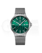 GW-12-3-24 kombinira preciznost i stil. Kućište od nehrđajućeg čelika srebrne boje (44 mm) i zeleni brojčanik susreću se s odgovarajućom narukvicom od mrežastog nehrđajućeg čelika – decentno, robusno i udobno. Brojčanik, s prepoznatljivim GLOCK-ovim nazubljenjima, naglašen je srebrnim kazaljkama i indeksima presvučenim švicarskim Super-LumiNova® premazom i zaštićenim safirnim staklom od 2 mm . Vodootpornost do 10 ATM , prikaz datuma i japanski mehanizam čine ovaj sat svestranim suputnikom – od ureda do vikend putovanja.