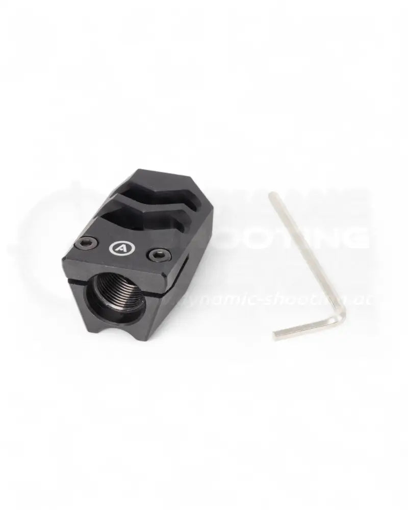 The Armanov 9mm compensator for handguns noticeably reduces recoil and muzzle rise, allowing for faster follow-up shots and a significantly more stable sightline. Thanks to its 2-port design and precise gas redirection exclusively upwards, it's the ideal upgrade for sport and training pistols with threaded barrels.